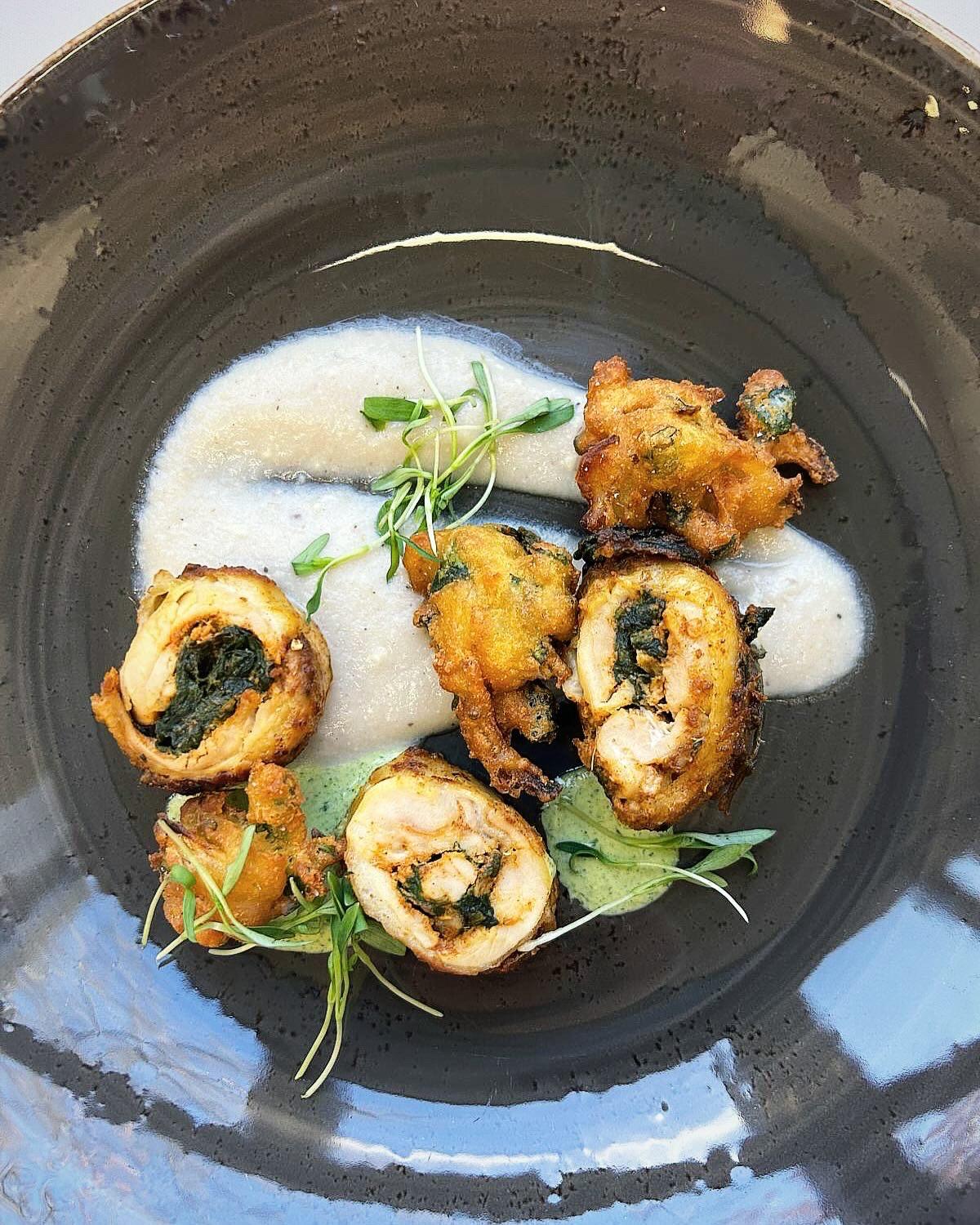 For her Chef of the Day presentation, Anushka served her signature Tandoori Chicken Roulade accompanied by a rich makhani gravy, crisp onion pakoda, and a flavorful chutney.